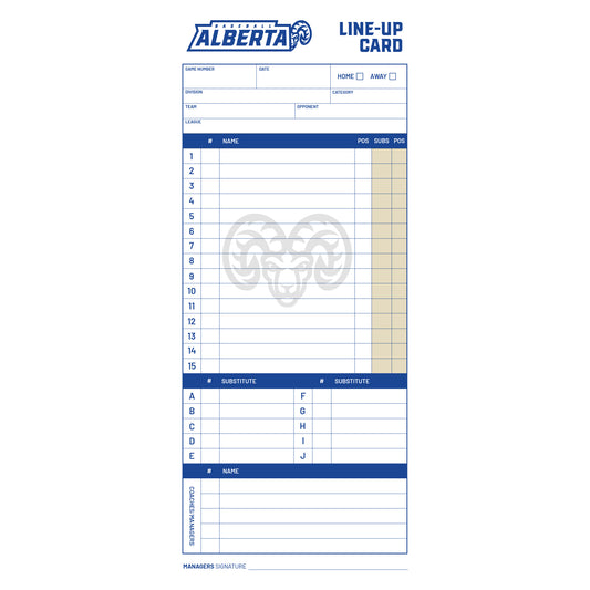 Baseball Alberta Official Line-Up Card